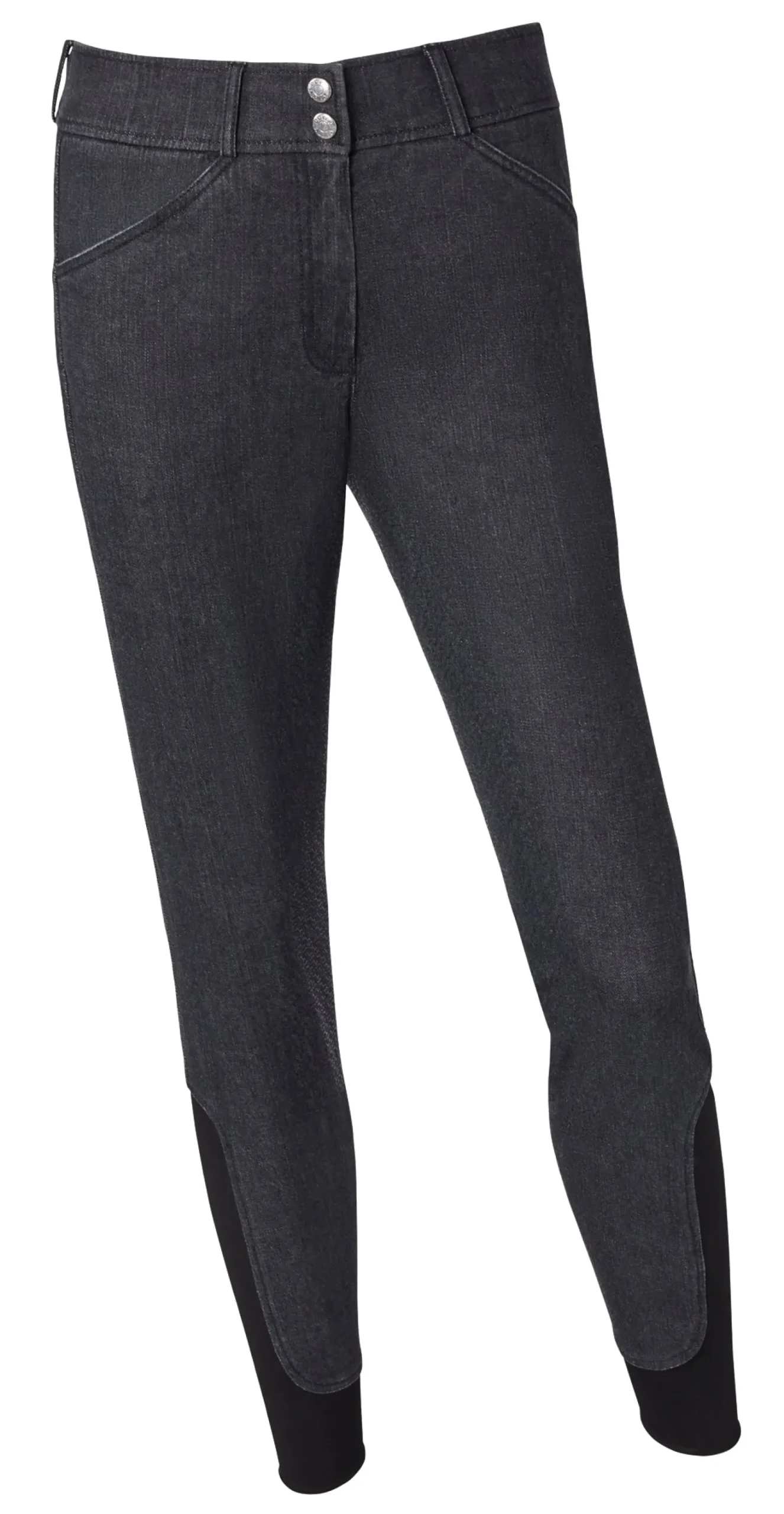 The traditional cotton-blend fabric of the DS Windham Jersey Full-Seat Breech offers the look of denim with the softness of knit fabric. Stretchy and comfortable, this breech has a silicone print full seat and sleek stretch bottoms.