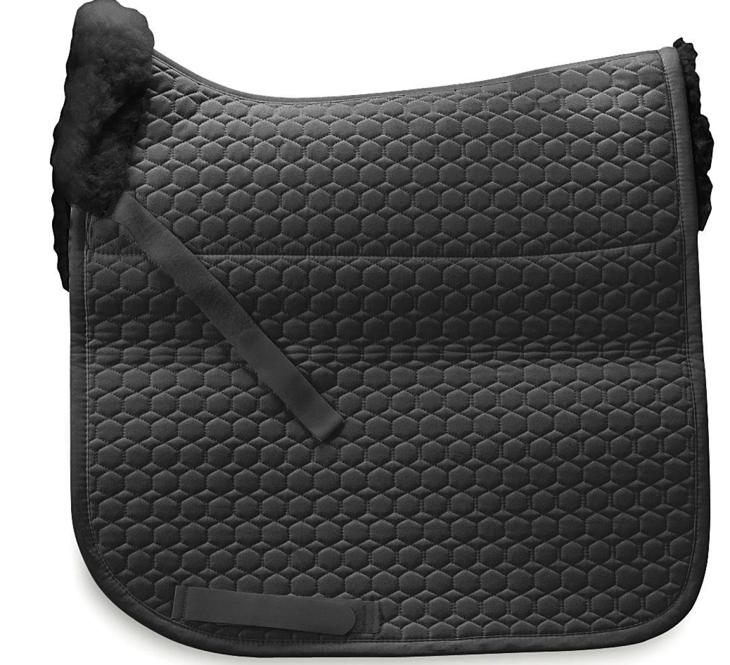 The E.A. Mattes Dressage Pad offers the ultimate in horse comfort and a classic look. It places premium quality genuine Mattes sheepskin wool fibers directly on your horse’s back. Particularly well suited to sensitive-skinned horses, the dense and fluffy wool fibers allow air to circulate to help keep your horse’s back cool, provide superior cushioning, mold to your horse and distribute pressure while eliminating friction.