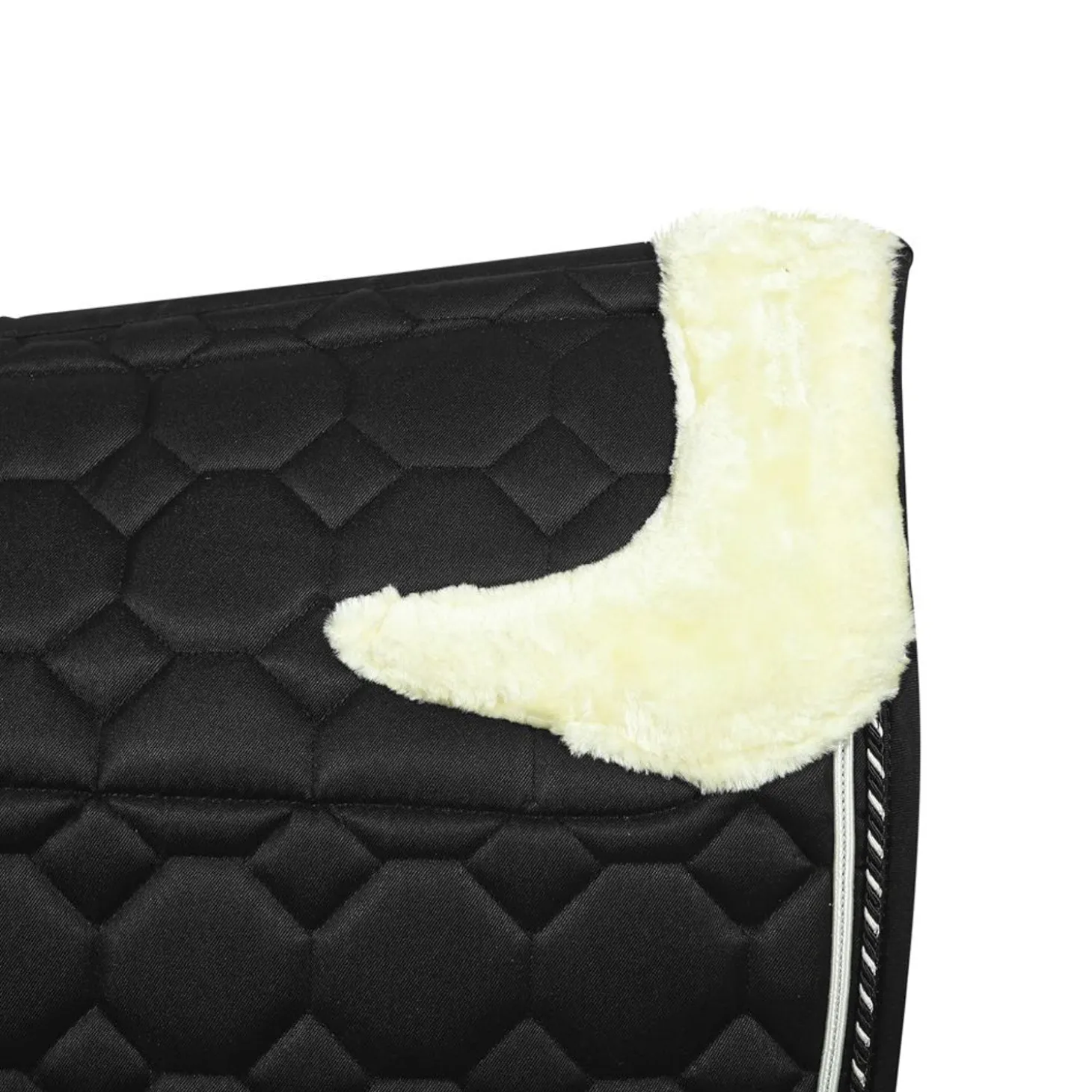 The Equine Couture™ Luxe All-Purpose Pad with Faux-Mink Fur offers a classic appearance plus the advantage of extra fleece and padding directly against your horse’s back. Faux-mink fur is strategically positioned beneath the saddle panels to ensure utmost comfort and protection for your horse’s back while eliminating bulk beneath your legs. Support foam inside also helps relieve pressure points.