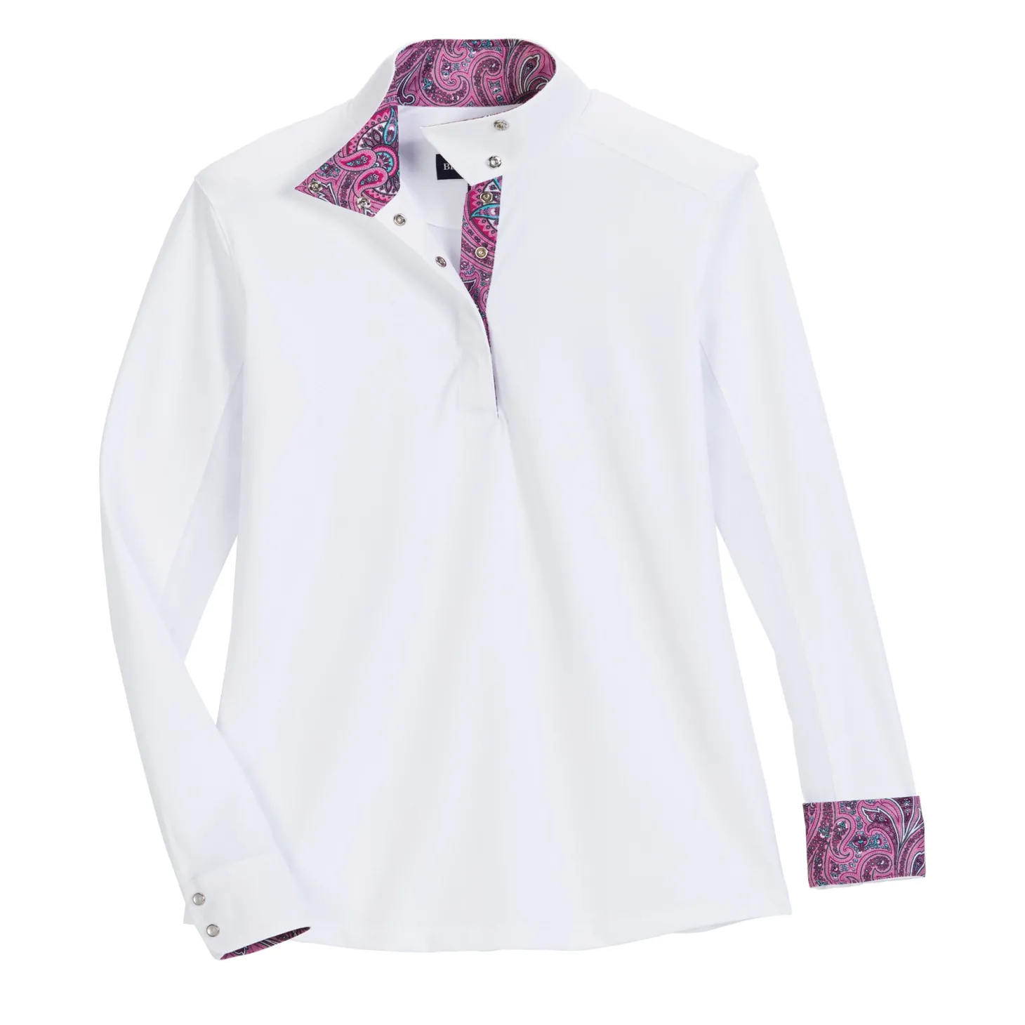- Exclusive trims inside snap-wrap collar, placket and cuffs.