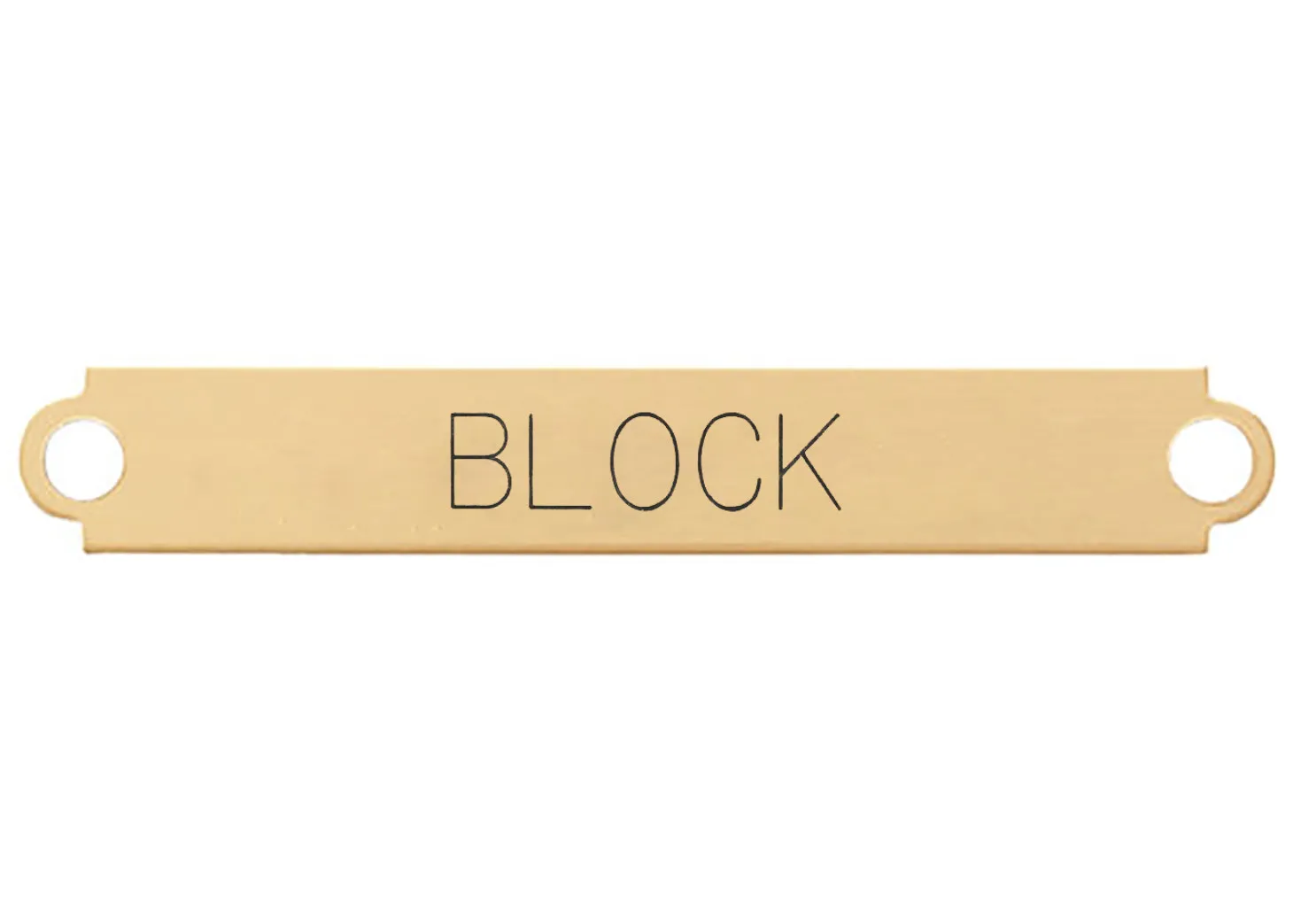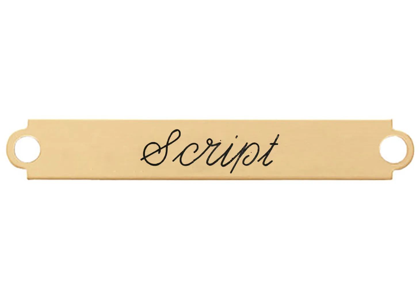 Our Fancy Martingale Nameplate is an attractive way to identify your horse’s martingale or breastplate. The nameplate will be engraved in the USA in your choice Block, Old English, Roman or Script letters with your horse’s name or your name. Predrilled 5/32″ holes fit rivets for attachment. Two sizes of rivets are included to allow you to attach the nameplate to either a padded or flat leather. Choose Brass or German Silver. Usually ships in 2-4 business days. Personalized items are not returnable.