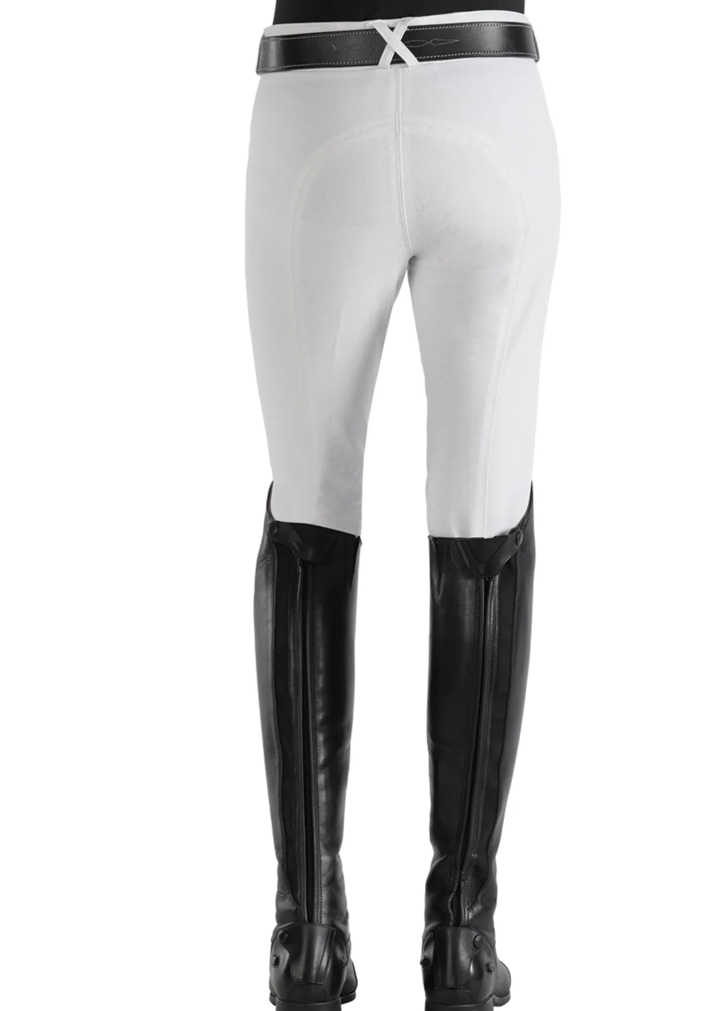 Wraparound sock bottoms are replaced with single-layer, high-stretch calf panels to provide a more custom fit and to eliminate bulk inside boots. Slash front pockets are made with low-profile stretch material for a no-show appearance on the outside and enhanced comfort on the inside. The silicone grip full seat boasts a stylish equestrian pattern and long-lasting grip.