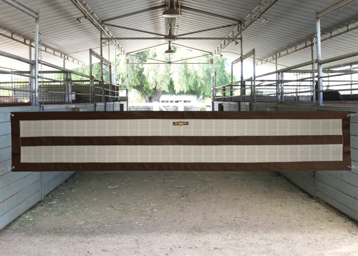 - Secures barn aisle doorways while letting air flow through.