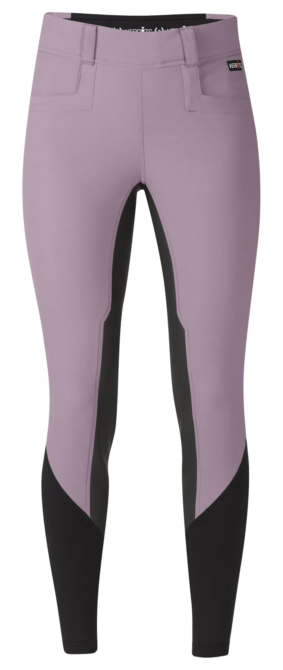 Square front pockets, belt loops, subtle branding and stretch sock bottoms give this breech a polished look. Kerrits’ popular Flow Rise waist sits low in front and slightly higher in the back for modest coverage.