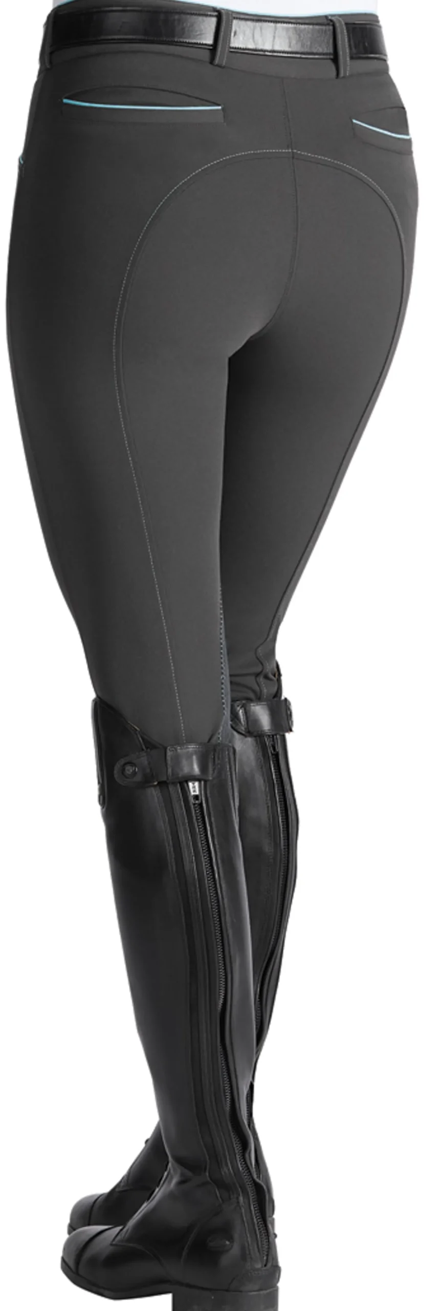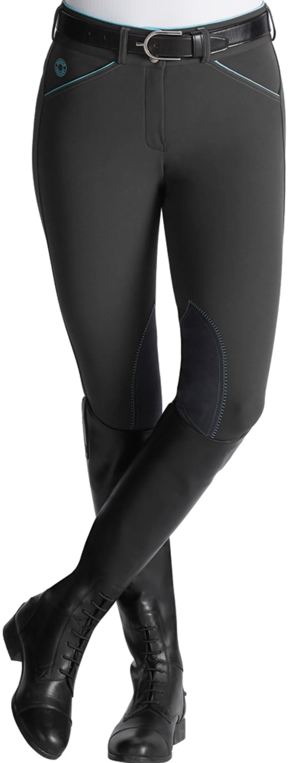 Single-layer, high-stretch calf panels offer a custom fit and eliminate bulk inside boots. Envelope back pockets are fully functional and trimmed with low-profile piping. Microsuede knee patches offer stability and hold.
