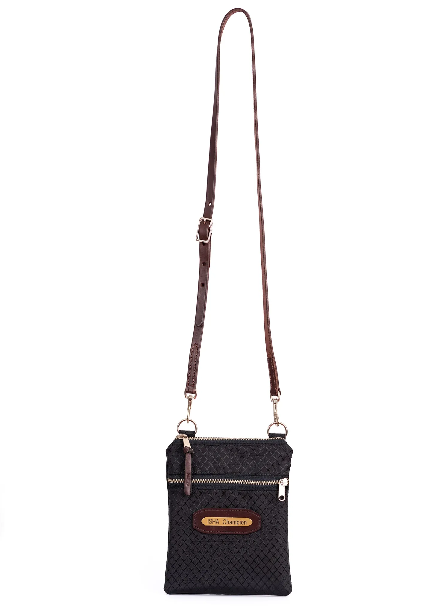 Perri’s® Champion Crossbody Bag with Leather Accents and Nameplate was created with horse show and year-end awards in mind. It features a leather accent patch to which the personalized nameplate can be attached.