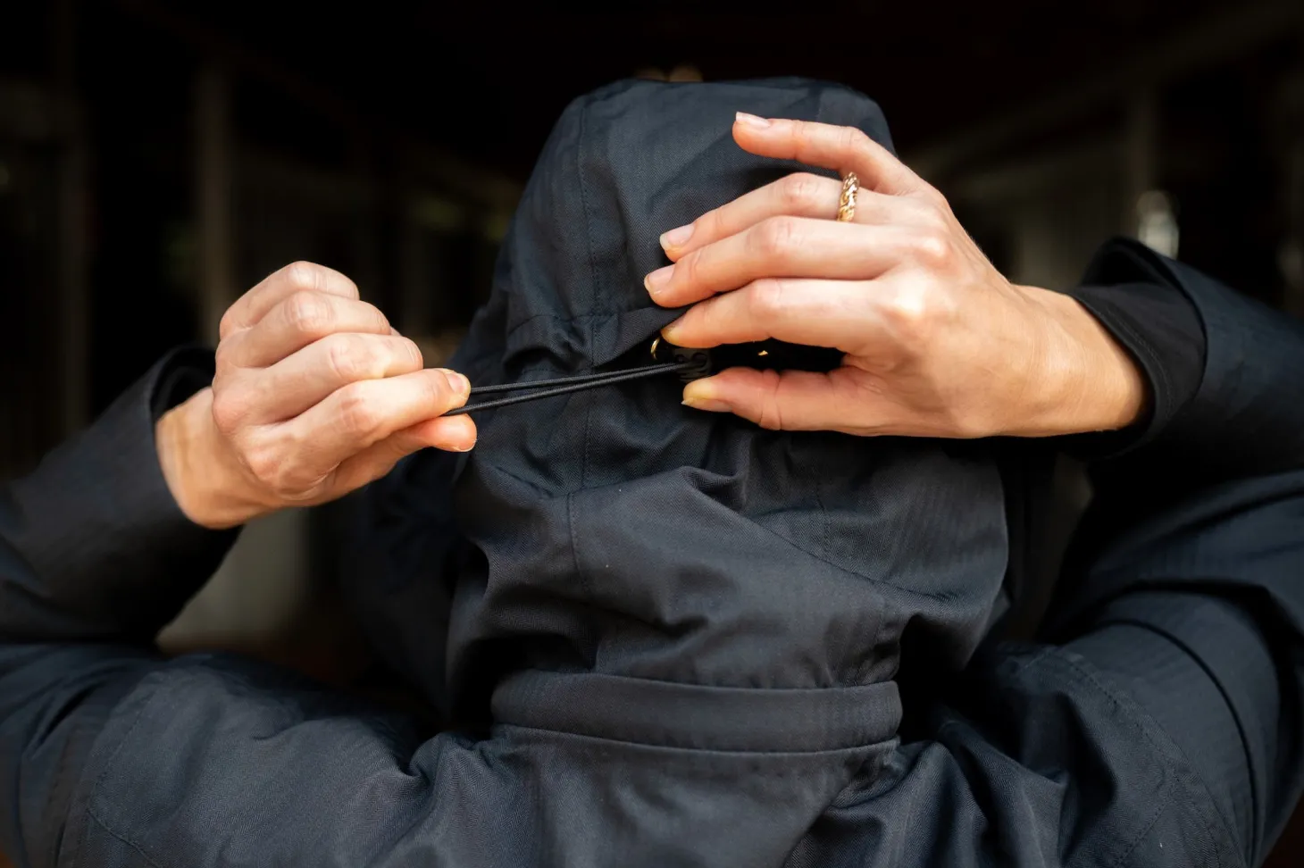 Breathable herringbone waterproof shell with fully taped seams and a quilted lining with 60 grams of insulation. Double storm flap secured by magnets blocks wind and water and armpit zips allow for adjusted air flow. Oversized zip-off hood with three points of elastic adjustment for a secure fit. Hood visor flips backward and secures with a magnet to convert to a standard sized hood. Secure pockets, including a new pocket on the thigh that fits a phone and an D-ring on hip holds your spurs and other essentials when not in use. Elastic cinch insert at back waist adds style and provides freedom of movement. For extra versatility, the unique interior “backpack” straps are designed in soft elastic with the logo to hold the top up when you want to wear it in a sleeve-down position. Layer it over your riding clothes to stay warm, dry, and ready for anything from barn chores to winter rides. Sized to layer over a standard riding outfit.