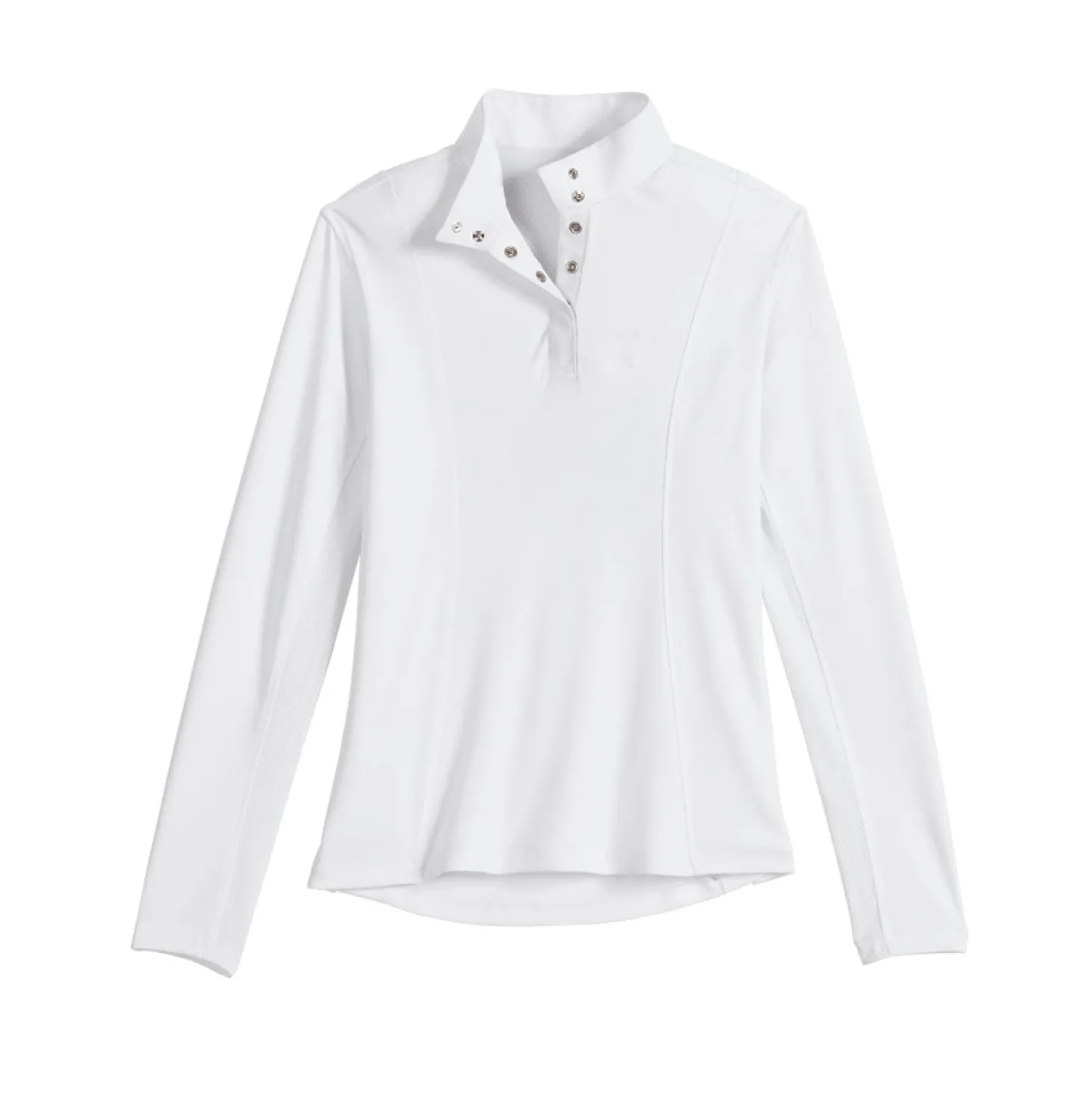Every young competitor can wear the Riding Sport™ Kids’ Essential Long Sleeve Show Shirt in any discipline. This show-day staple in crisp and classic white offers a flattering fit. The body in lightweight interlock knit rated UPF 50+ wicks perspiration and dries fast.