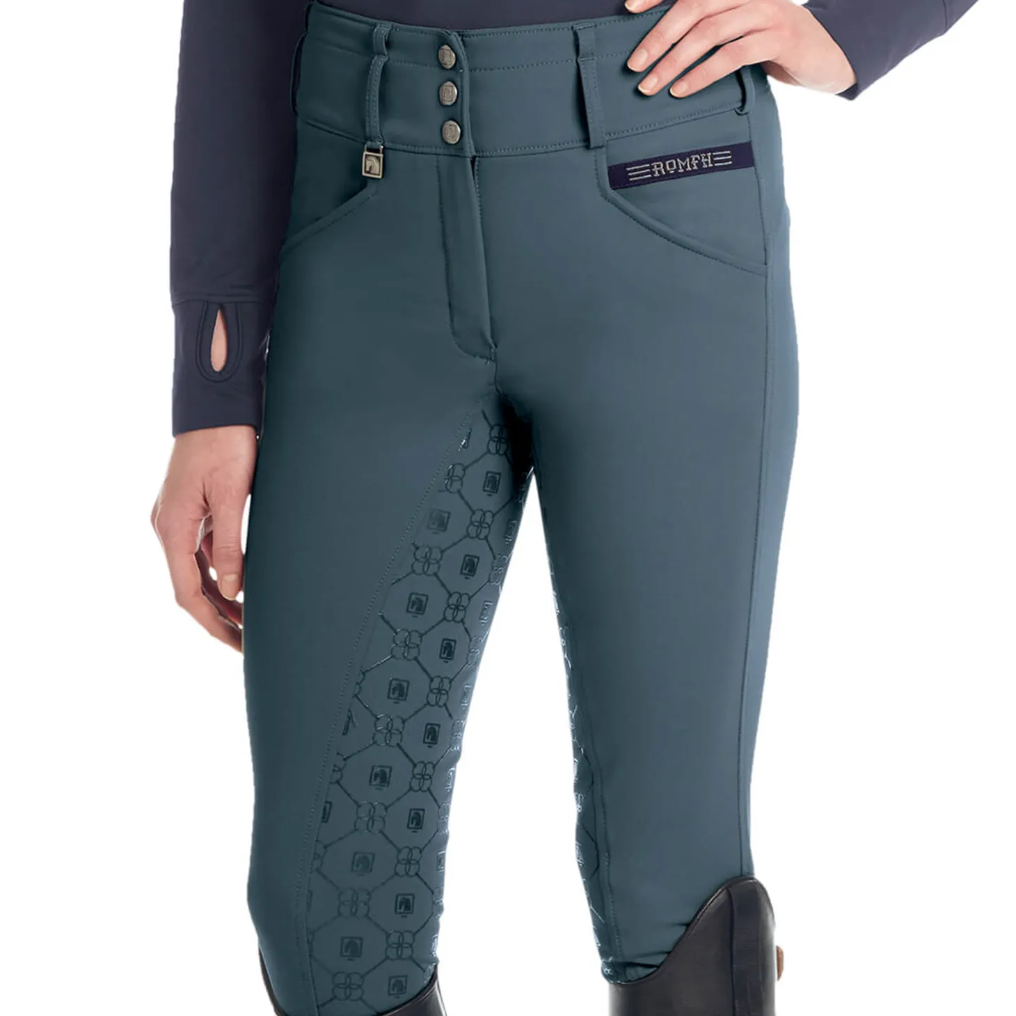 The Romfh® Isabella Silicone Full-Grip Breech is made of exclusive cooling Soft-Touch fabric in the same flattering, curvy cut as the super-popular Champion Full-Seat Breech. This “Curve Fit” is a special cut to reduce any gapping at the back waist; it is nipped in at the waist and cut fuller through the seat and thigh for a perfect fit on curvy girls.