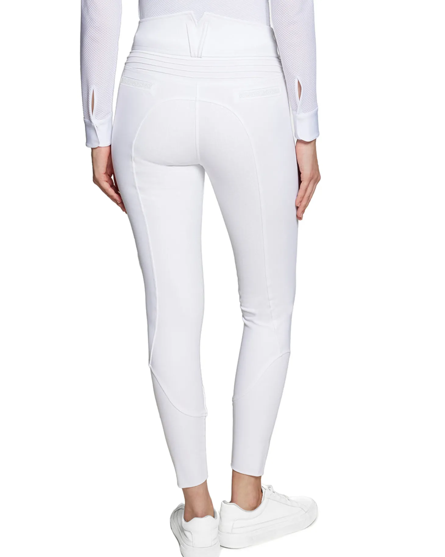 The Samshield® Ladies’ Claranova Full-Grip Breech is high-waisted with a stylish ‘V’ cut and pleat detailing at the back. Breathable, compressive fabric provides enhanced support and 4-way stretch material provides total freedom of movement. Decorated with Swarovski® crystals on the belt loops and pockets for a sophisticated look. Two front welt pockets with zippers, phone pocket with an invisible zipper for security, a calf compression zone to increase blood circulation and an inner elastic panel on the waistband to keep your shirt in place.