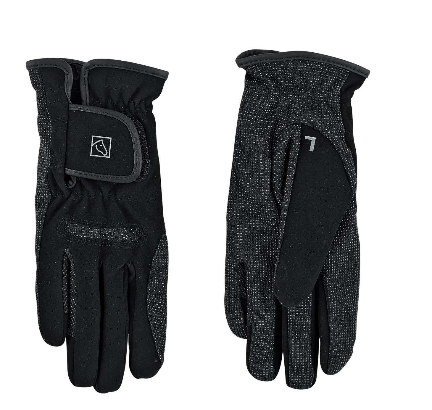The SSG® Schooler Glove offers good grip with pimpled rubber on the palm and rein contact areas. An articulated area over the knuckle is elasticized for comfort. Elastic wrist with hook-and-loop closure. An “L” and “R” on base of left and right thumbs ensure easy identification. An economical, durable and comfortable riding glove!
