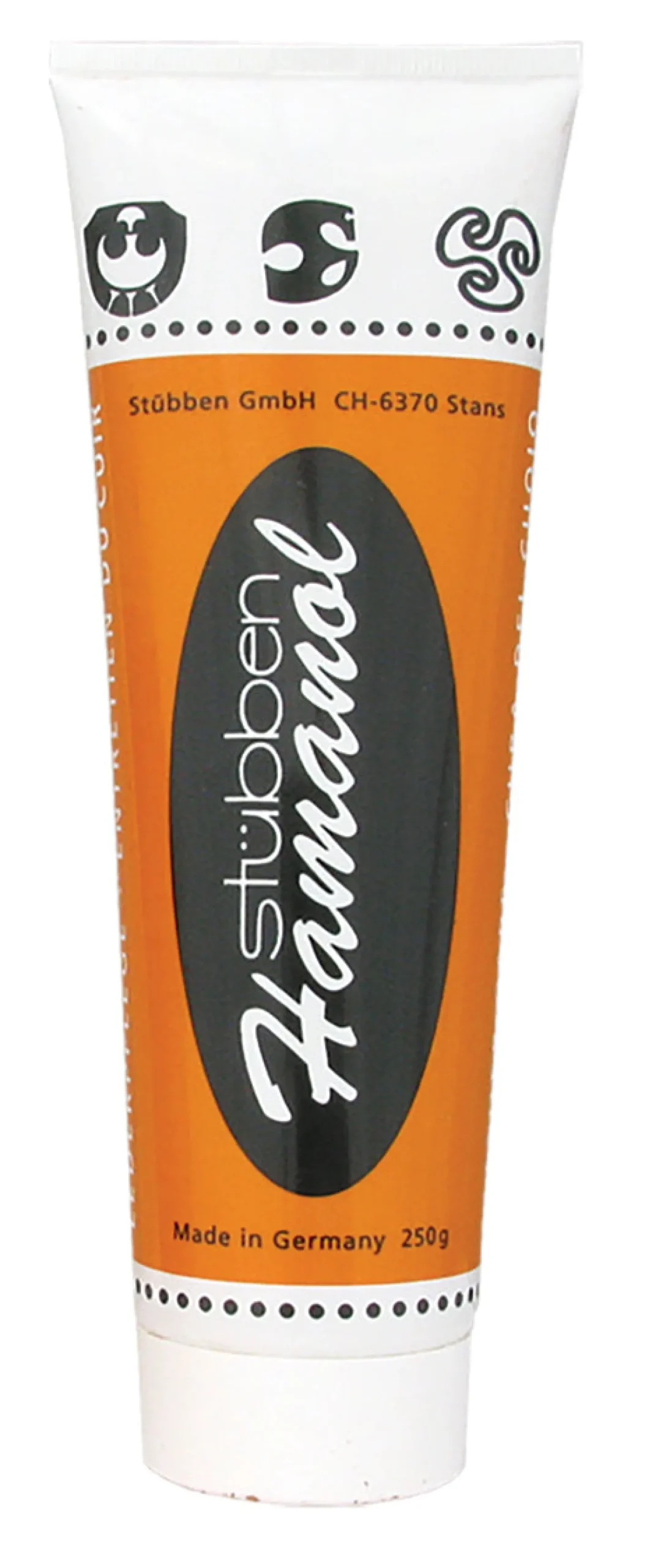 Ideally, Hamanol is recommended for use after cleaning with Stübben liquid pH-neutral saddle soap. Stübben leather care products were developed in cooperation with their tanners and are perfectly suited for Stübben leathers. Upright tube.
