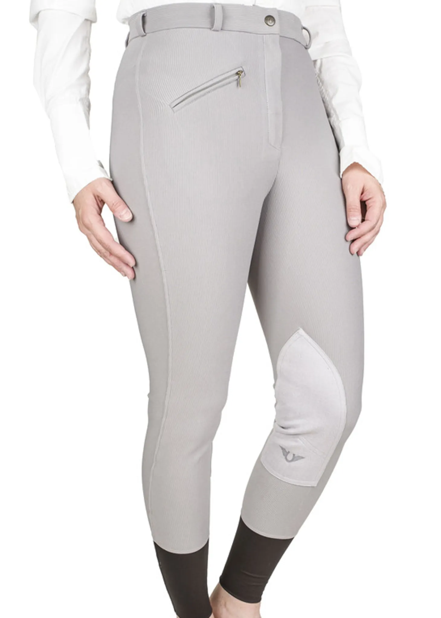 You’ll appreciate the TuffRider® Breech for its durability, easy care and budget-friendly price! Long-wearing stretch ribbed fabric offers comfort for riding; UltraGripp™ knee patches provide grip. This classic ladies’ breech is styled with a regular rise, front-zip closure, flattering slant zip pocket and stretchy sock bottoms.