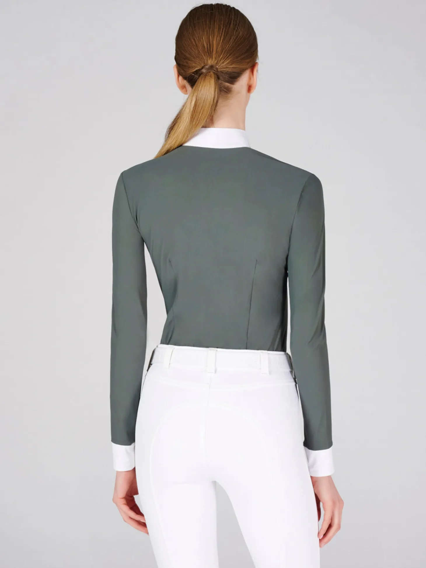The Vestrum Ladies’ Aosta Show Shirt in a beautiful technical fabric allows freedom of movement, wicks away moisture fast and does not need to be ironed. Handmade front bib has a clean look with the zipper placed on the left shoulder.