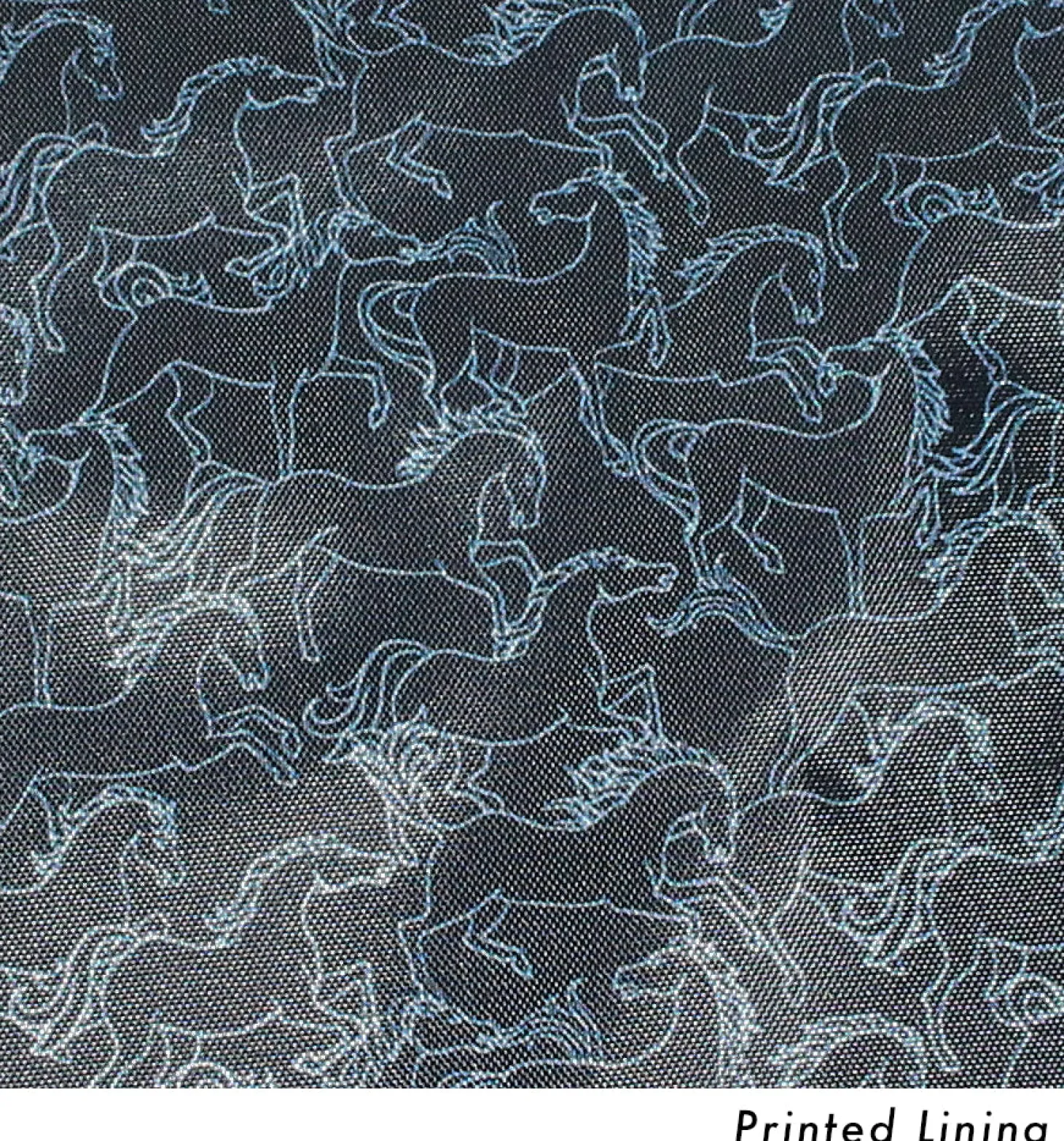 Store your helmet in the freshly updated Ariat® Team Helmet Bag! This popular design has a convenient double zipper opening for easy filling. Two exterior pockets with magnetic closures and an interior zip pocket offer plenty of storage for hairnets, stock pins, gloves or other little accessories. Lined in an attractive equestrian print and complete with comfortable web carry straps. 10″H x 12″W x 10″D at base.
