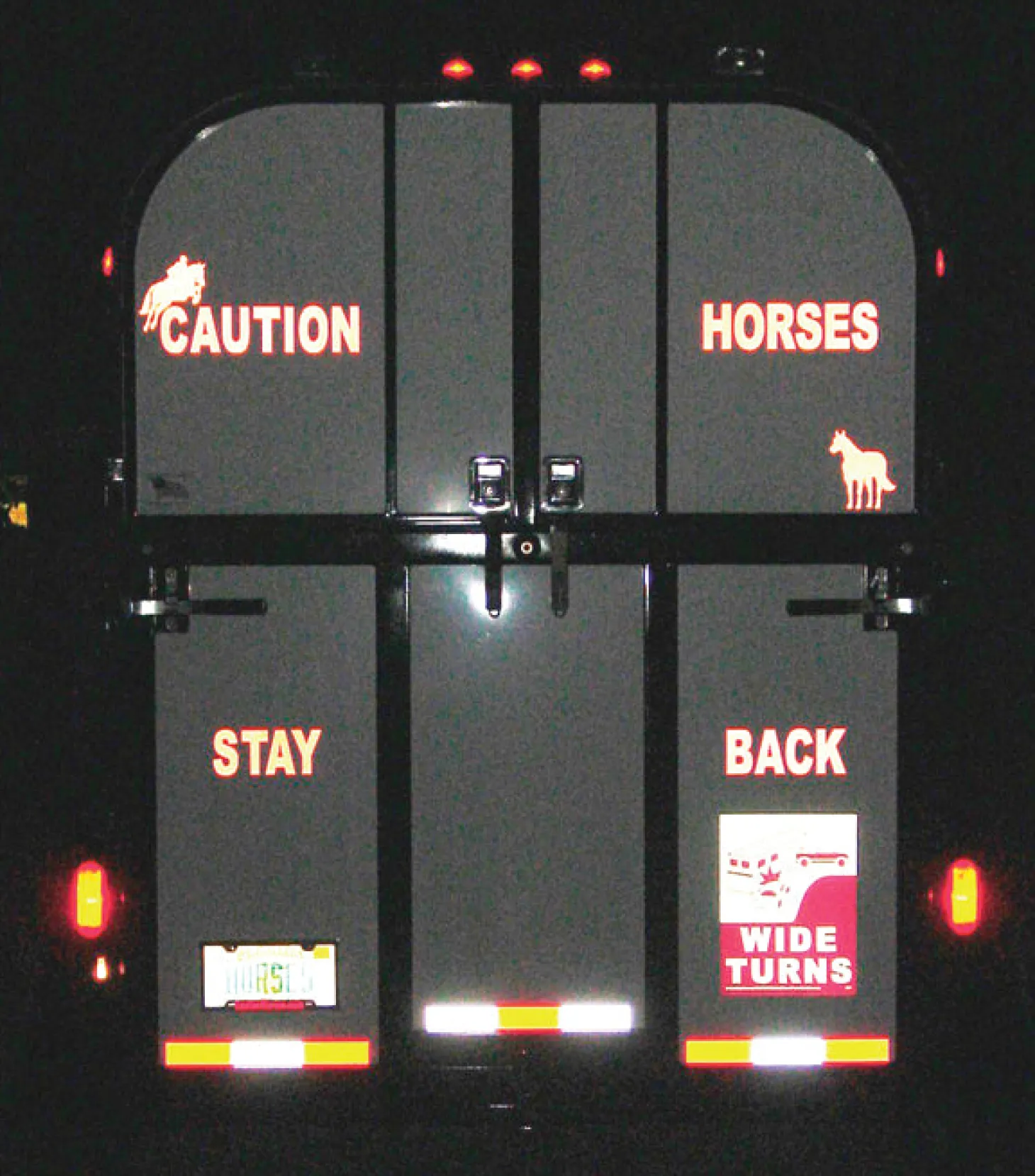 Help other drivers spot your horse trailer with the Caution Horses Sign. Engineer grade reflective vinyl of the same quality used on public service vehicles helps increase your visibility by day or by night. Durable, easy-to-see letters won’t wear off and are easy to apply.