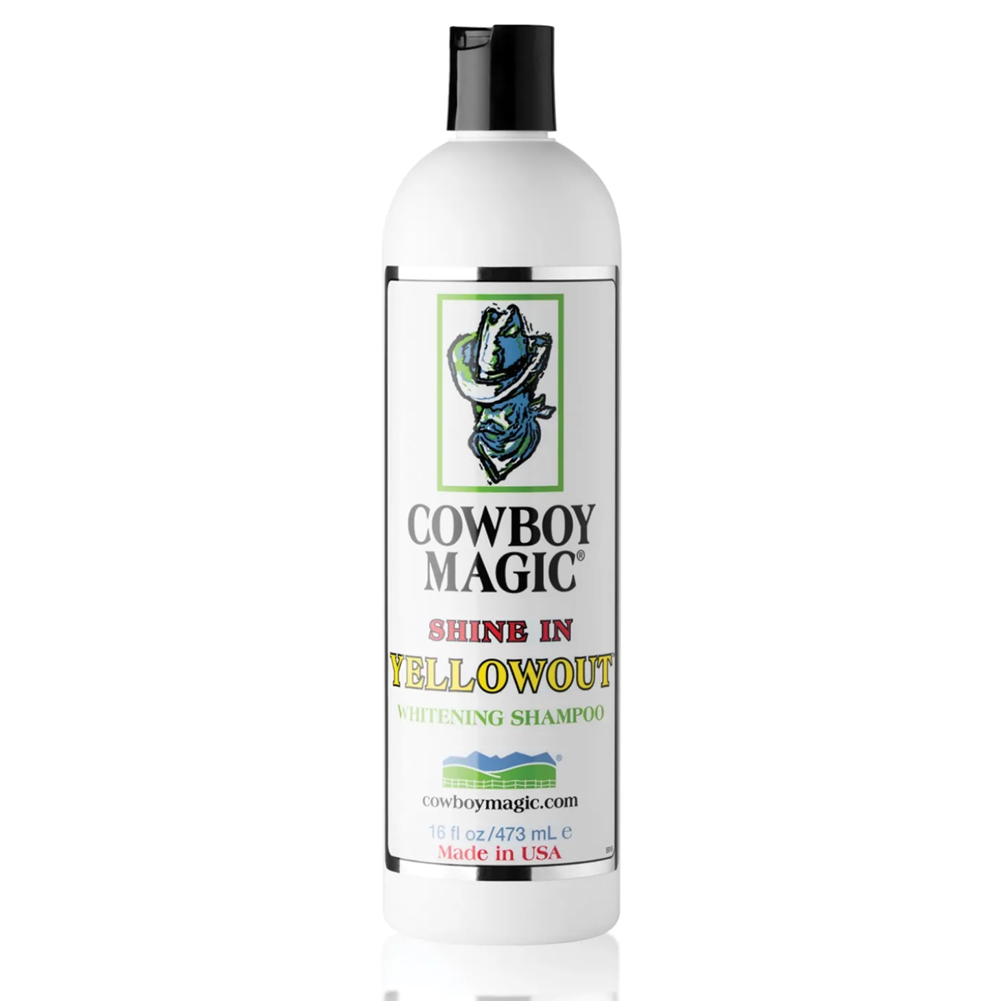 Neutralize yellow stains and brighten your horse’s hair with Cowboy Magic® Shine in YellowOut™. Besides removing yellow stains, it gives dull horsehair a more brilliant sheen and leaves it silky, shiny and smelling good. Yellowout works well on every color of horse. Pt.