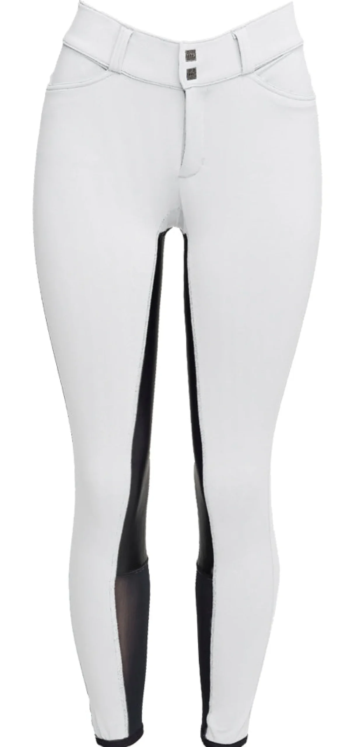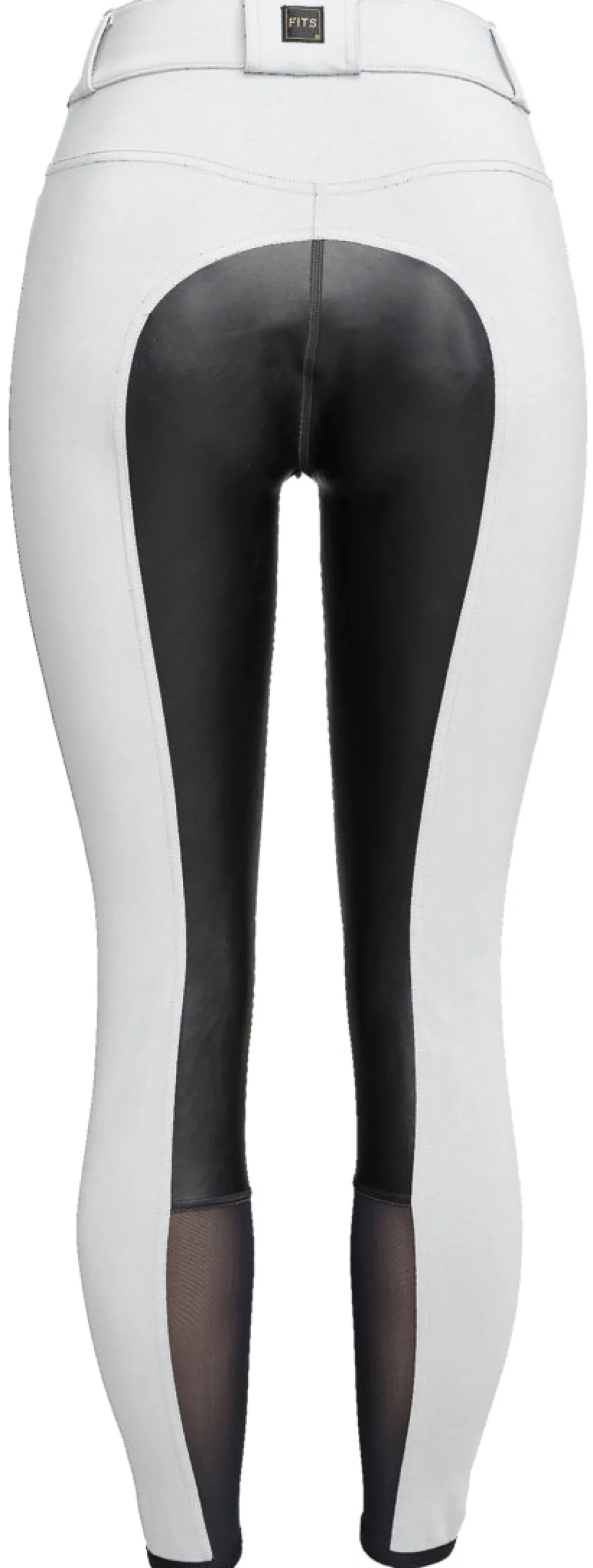 The FITS® Free Flex Front-Zip Full-Seat Breech offers exceptional grip and performance, yoga pant comfort, anti-fatigue muscle compression and the clean long lines of a traditional full-seat breech complete with a gorgeous back yoke and Euro-style seat. This stunning ladies’ performance breech has all the FITS legendary design elements that eliminate binding, pinching and constriction often found in traditional full seats. The unique, patented, leather-free stretch gusseted crotch allows you to sit deeply in the saddle with full freedom to move. It’s made of PerforMAX™ All Season compression fabric and includes the hidden ab panel to smooth and support the core. Cooling Powermesh on the lower leg provides a sleek look and feel under boots. This amazingly comfortable breech features FITS exclusive new Flex-Leather synthetic material on the full seat, which looks and grips like leather, but can be machine washed and dried.