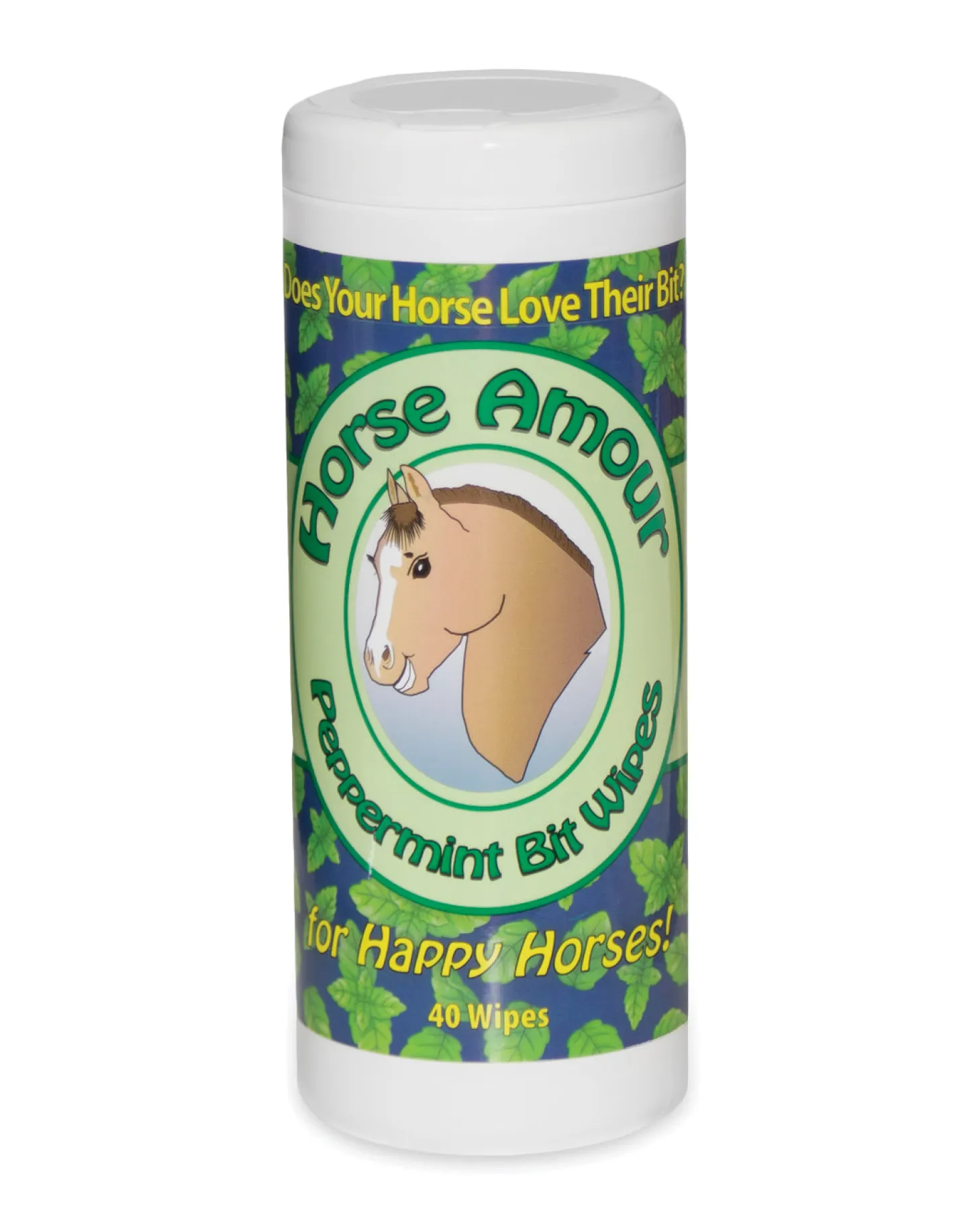 Horse Amour® Bit Wipes make it easy to keep your bits clean and your horses happy! Naturally flavored with peppermint. 40 disposable wipes.