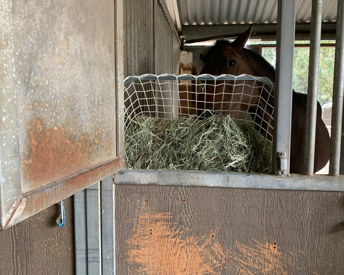 The Kensington™ Freedom Feeder Adjustable Frame is a custom metal frame designed to be used with the Freedom Feeder Day Net, Extended Day Net or Full Bale Net and can hold up to 125 pounds of hay.