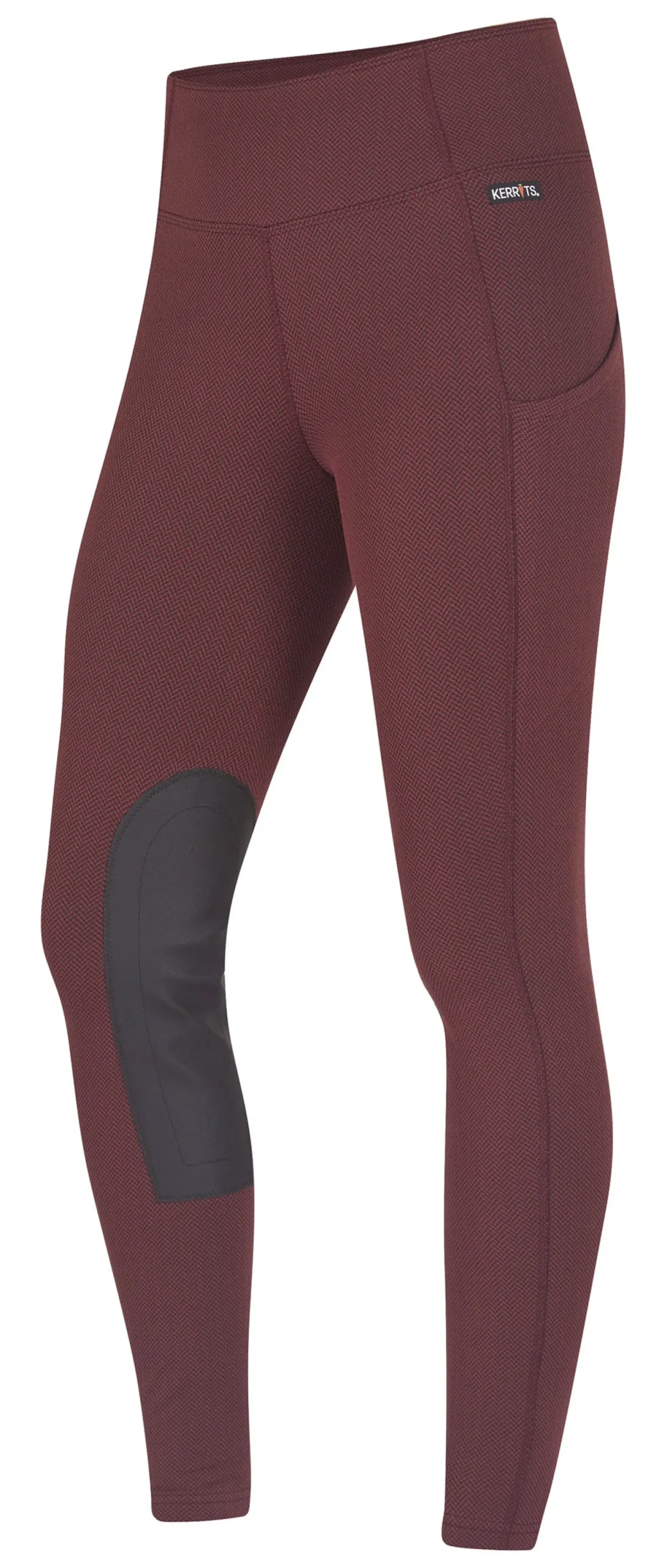 Kerrits® Fleece Lite II Knee-Patch Tight is the lightest weight winter tight of the Kerrits line. Designed to keep you comfortable in the shoulder seasons and while riding indoors all winter, it features fun shades of the brand’s herringbone jacquard pattern. Cozy brushed fleece inside has an insulating effect. Four-way stretch allows optimal mobility.