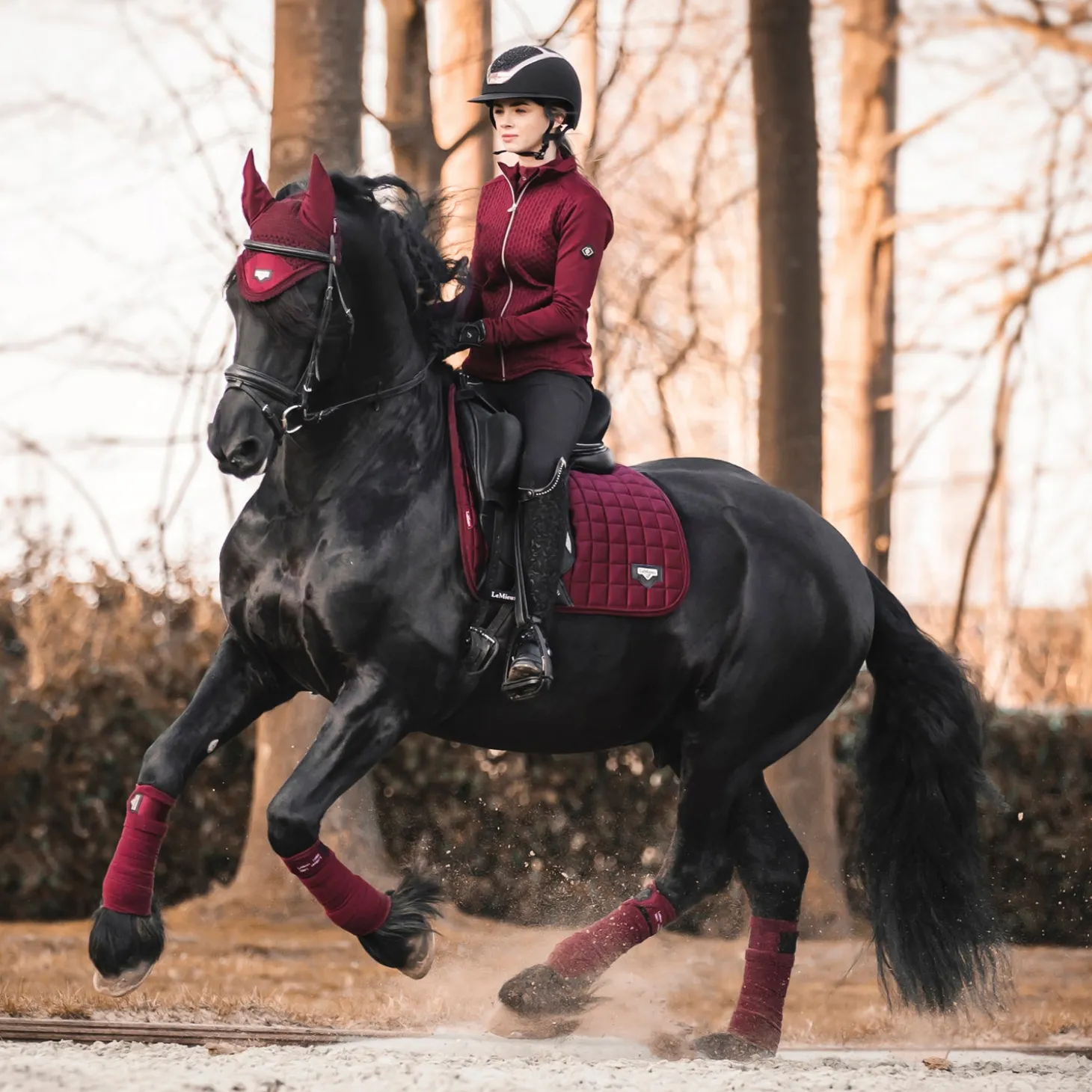 Apply them to your horse’s legs for exercise on their own or with LeMieux under bandage pads for extra protection. This set of four polo wraps comes in a reusable zippered carry case.