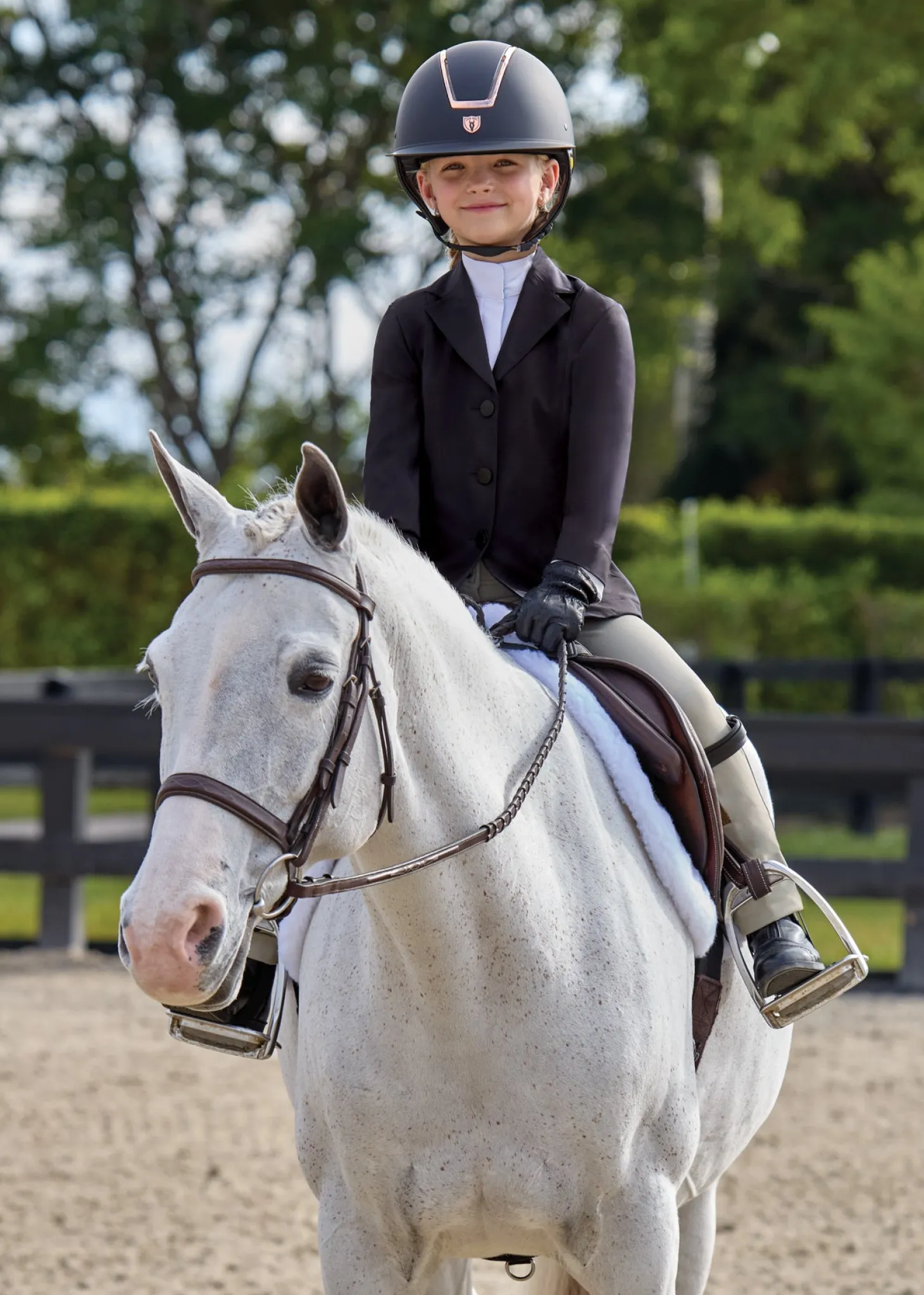 All the same amazing features as R.J. Classics Women’s Sloane Show Coat but designed for the youngest R.J. riders! It brings tradition and ultimate comfort at R.J. Classics most accessible price point. Featuring an unconstructed design for freedom of movement and a comfort stretch fabric, you will feel comfortable and confident walking into any show ring. The hidden interior zipper eliminates gaping, while the back number holes neatly tuck your number strings inside the coat.