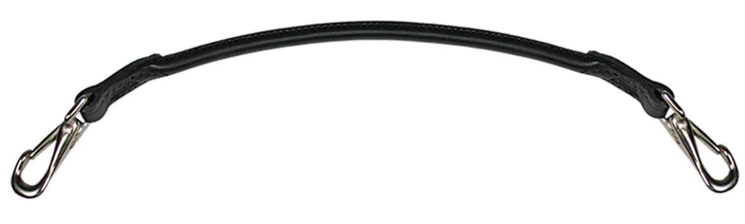 The Rolled Leather Grab Strap attaches to the front dees of any dressage saddle to offer extra support and serve as a welcome emergency grip for riders of all ages and levels. It is also ideal to use when lungeing the rider and can serve as an aid in carrying and lifting a saddle. Comfortable to hold in rolled leather. Metal clips.