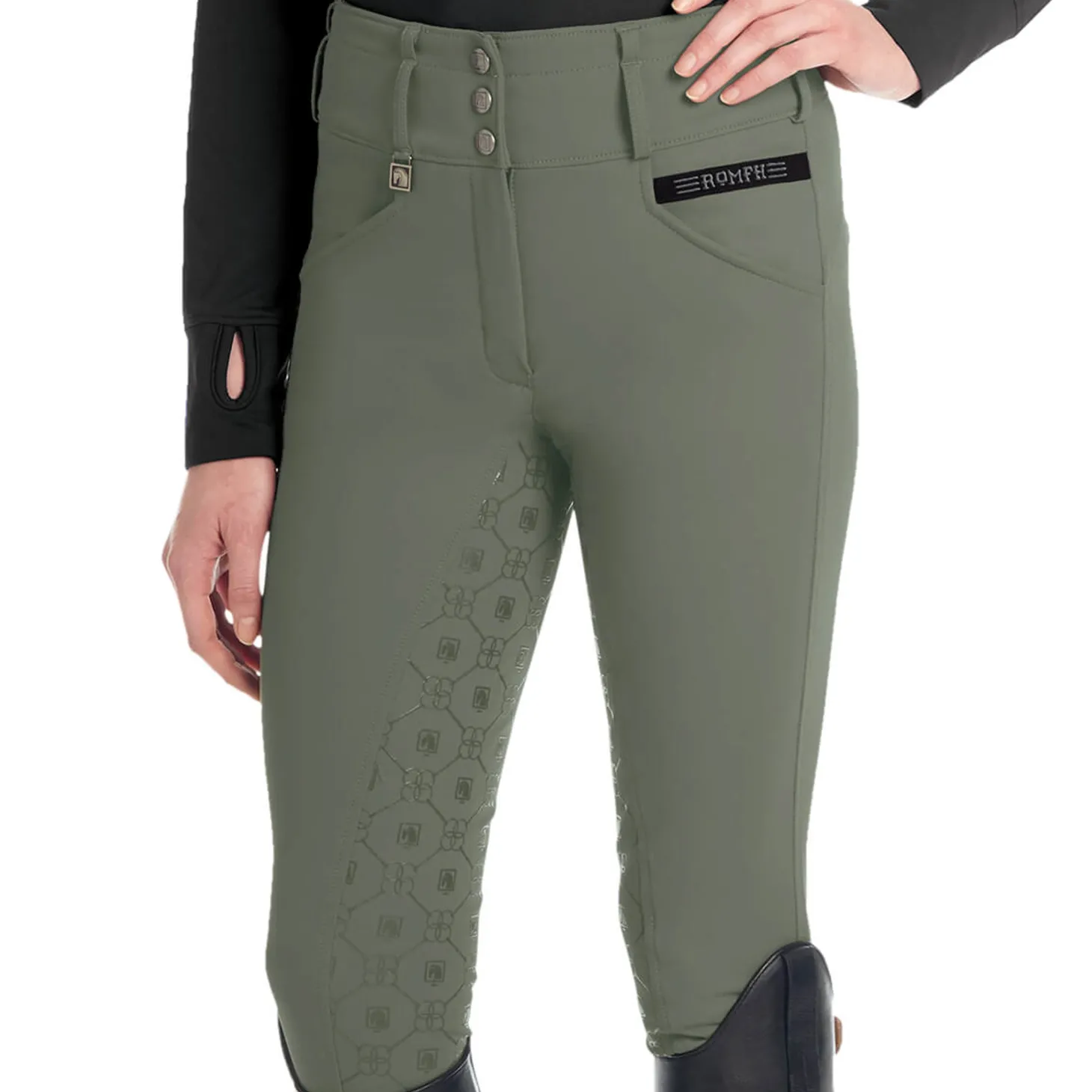 The Romfh® Isabella Silicone Full-Grip Breech is made of exclusive cooling Soft-Touch fabric in the same flattering, curvy cut as the super-popular Champion Full-Seat Breech. This “Curve Fit” is a special cut to reduce any gapping at the back waist; it is nipped in at the waist and cut fuller through the seat and thigh for a perfect fit on curvy girls.