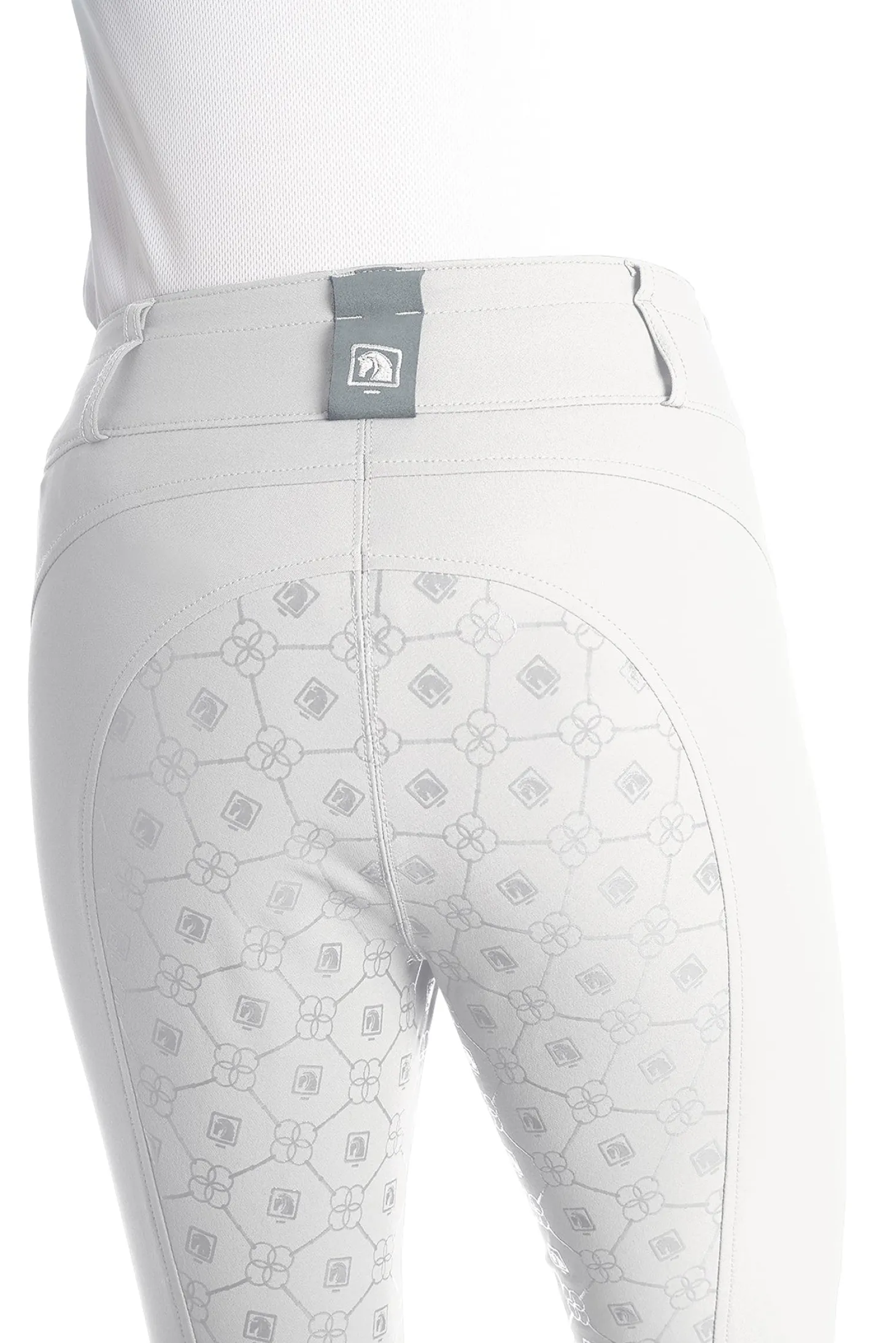 This ladies′ breech provides the high-waist fit desired by top-level riders. A silicone print on the seat provides a secure grip in the saddle without the added bulk of a full-seat layer.