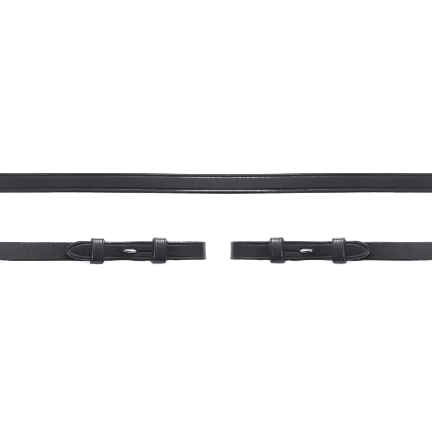 Crafted of high-quality leather, the Schockemöhle Curb Rein is an ideal addition to your double bridle. Hook stud closures. Leather slide. 1/2″W x 54″L.