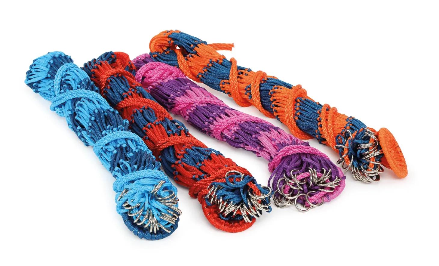 The Shires Deluxe Hay Net in extra-strong mesh holds 10 flakes (approximately 40 pounds). Metal rings at the top help this large hay net stay open for filling. A single large metal ring at the base provides support. Synthetic mesh has 2″ feeding holes to reduce hay waste and slow your horse’s rate of consumption so hay lasts longer.