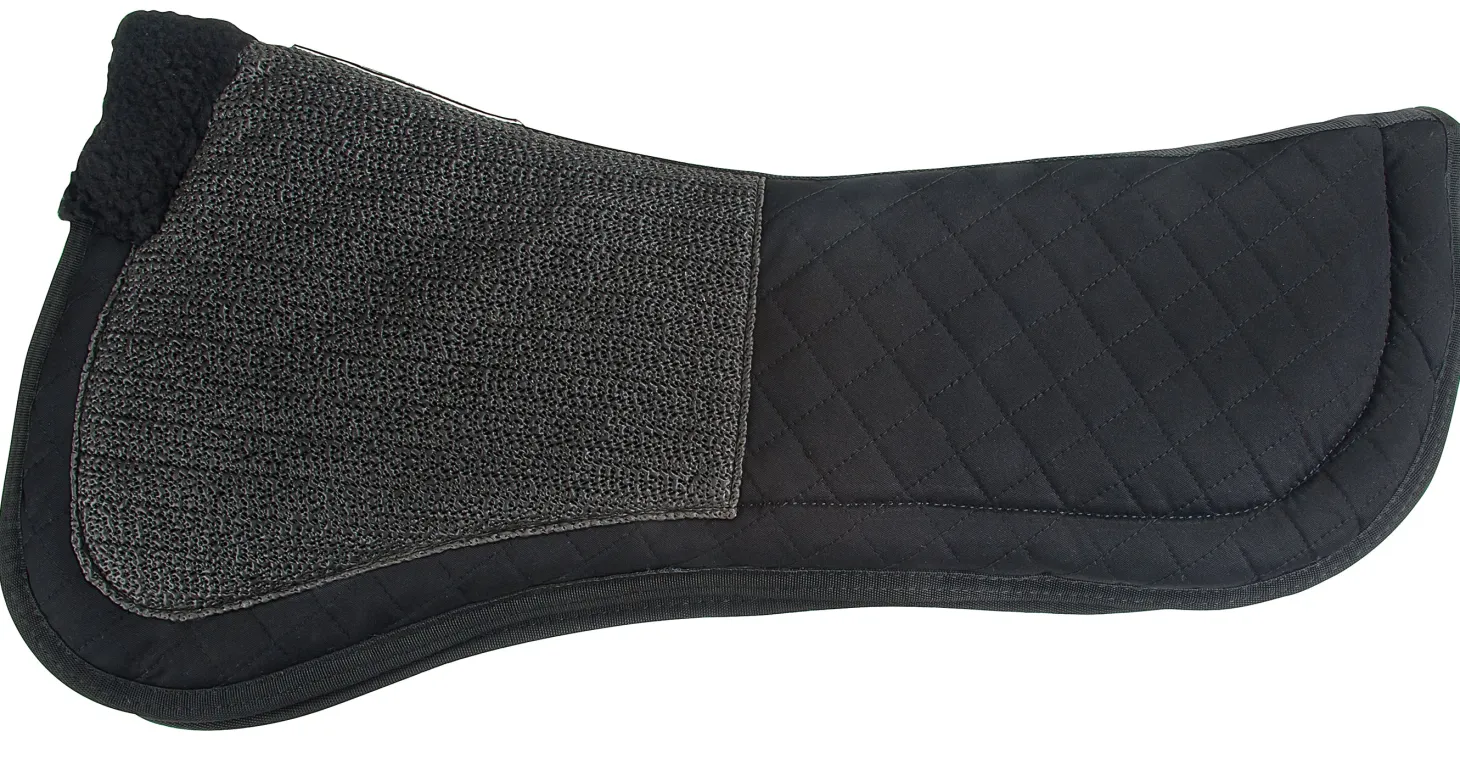 Success Equestrian’s high-quality, no-slip grip material lines the bottom of this half pad to keep from slipping on any saddle pad. The inner layer is open cell, breathable and shock-absorbing foam. A strategically placed no-slip grip on the top helps keep your saddle from slipping—it is hardly noticeable when tacked up.
