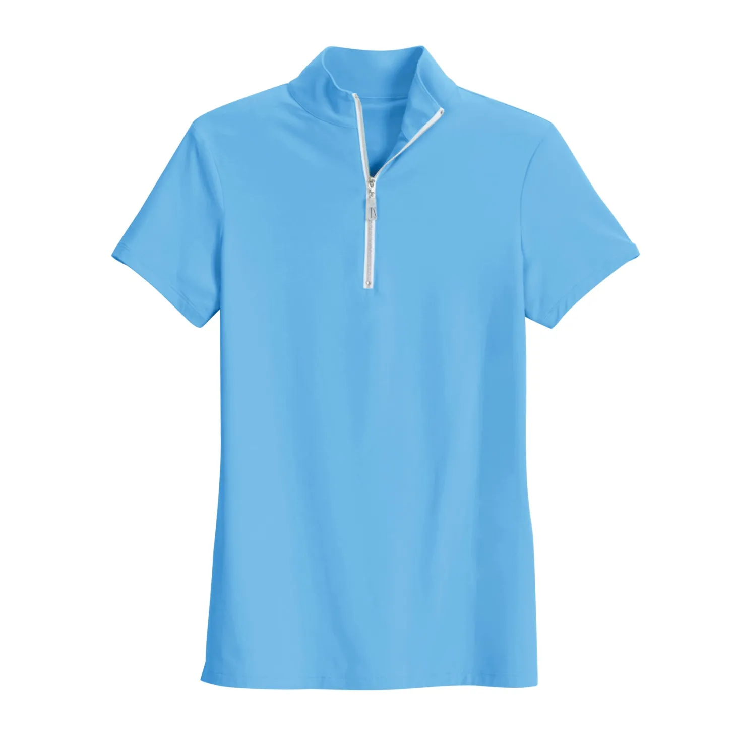 It is also lightweight, stretchy and moisture-wicking. A slightly brushed inner surface feels luxurious against your skin, while the stand collar and zip placket maintains a polished look when paired with breeches.
