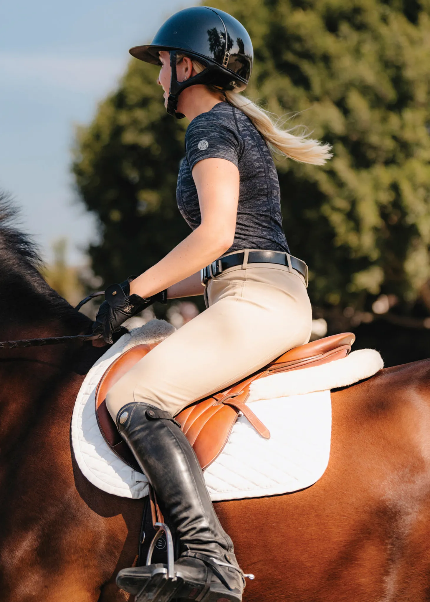 The TKEQ Kennedy Seamless Short Sleeve Top offers the comfort and performance that makes it a must-have for riders. Ultrasoft fabric rated UPF 30+ offers moisture wicking, breathability and four-way stretch. The contouring knit sits closely against your body; smooth knit fabric finishes the neckline and short sleeves.