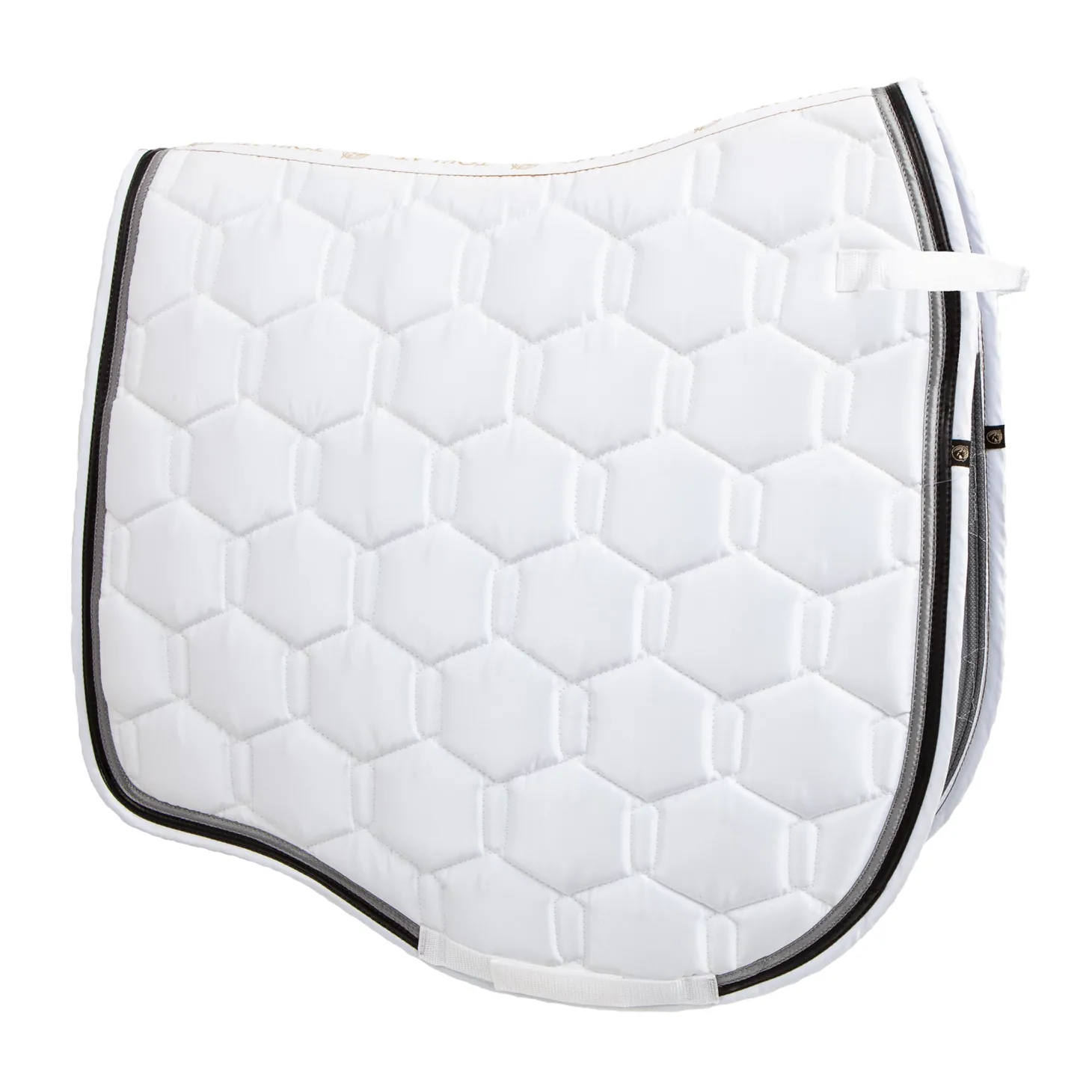The Toklat® Tango Double Hexagon Dressage Pad is a stylish partner to most dressage saddles. Made with a satin twill top with faux leather and twill trim, it provides a stylish and refined look. The quick-dry lining offers moisture management, while extra fill creates a lofty and comfortable amount of padding. Hook-and-loop d-ring and girth straps for security.