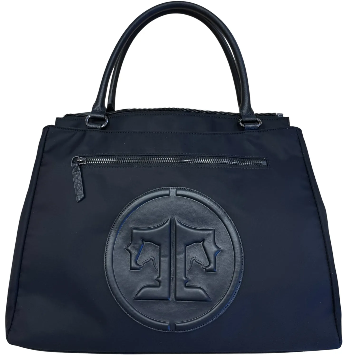Carry your equestrian style to your work spaces and beyond with the Tucker Tweed Equestrian™ Medium Office Tote. This nylon/leather upscale tote is a pocket powerhouse! Interior pockets for laptop, drink, phone, cords and more. Exterior completed with gunmetal hardware, matching zipper pockets both front/back and trolley sleeve. Includes adjustable shoulder strap. Fits 13″ PC/14″ MacBook laptop.